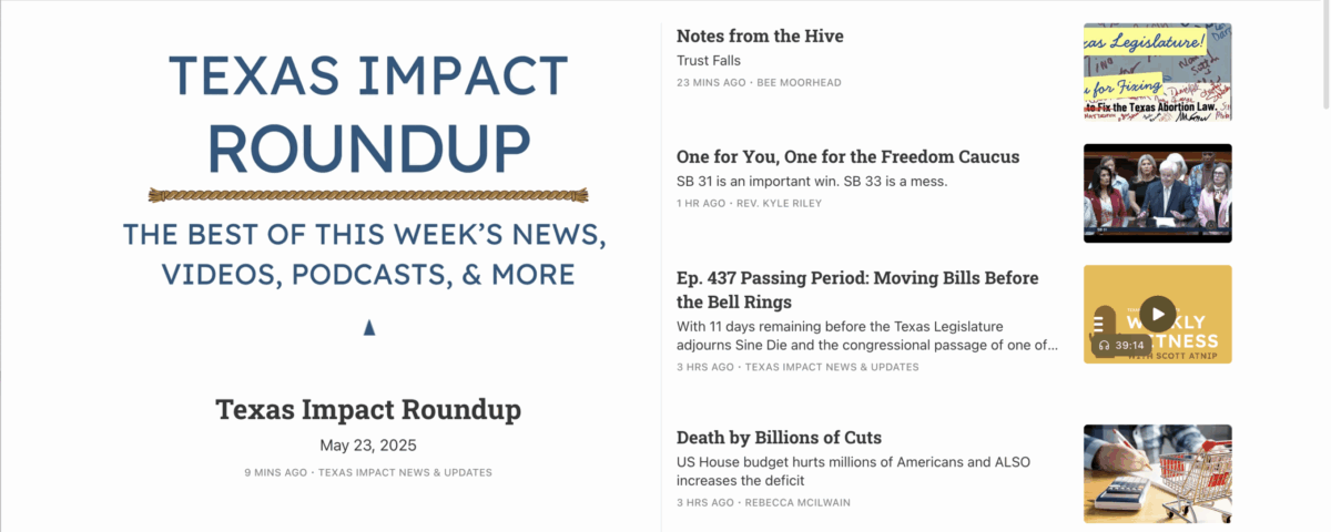 This week, Texas Impact is celebrating the passage of SB 31, the Life of the Mother Act. Texas Impact members have worked hard on this bill all session, including collecting thousands of postcards and making thousands of phone calls urging legislators to clarify that doctors can terminate a pregnancy that threatens the mother’s life. It wasn’t an easy legislative project, and we are grateful for everyone who collaborated to get the bill over the finish line.
