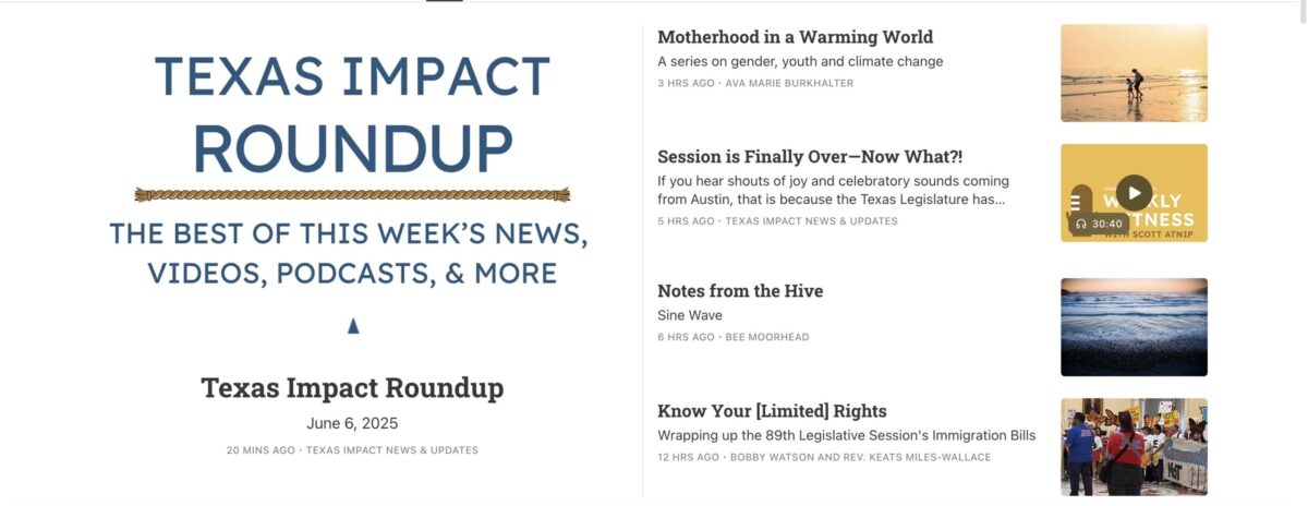 Texas Impact tracked almost 1,700 bills throughout the session. Of these, we included 168 in our weekly action alerts, and Texas Impact members made more than 16,000 calls to legislative offices. Our lobby team has posted wrap-ups on each of our issue areas with information about which bills passed and which did not.